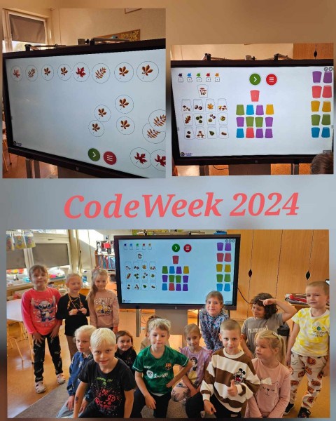 W październiku dzieci z grupy Ekoludki wzięły udział w CodeWeek wykonując zadania z zakresu kodowania. Przedszkolacy kodowali na macie do kodowania oraz kolorowali wg określonego kodu, korzystaliśmy również z zadań online i wykonywaliśmy zadania w genially. Tym samym dzieci otrzymały certyfikat udziału w wydarzeniu. A co to jest CodeWeek to Europejski Tydzień Kodowania, to inicjatywa promująca programowanie i umiejętności cyfrowe wśród dzieci i młodzieży w ciekawy i interesujący sposób. Nauka kodowania ma za zadanie pomagać wszystkim zrozumieć otaczający nas świat, który ulega ciągłym zmianom. To przede wszystkim rozwijanie logicznego myślenia i szukania innych niecodziennych rozwiązań. Dodatkowo dzieci poprzez kodowanie uczą się pracy w grupie, ale i same próbują dojść do właściwego rozwiązania. Poniżej kolaże z wykonywanych działań.